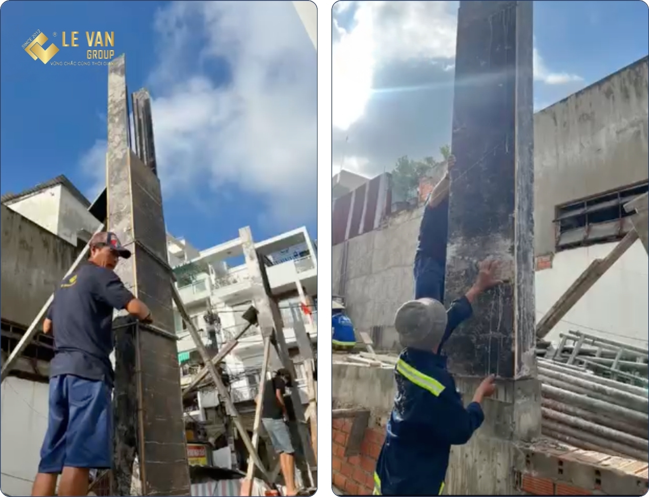 Công tác đổ cột, tháo ván khuôn tầng trệt
