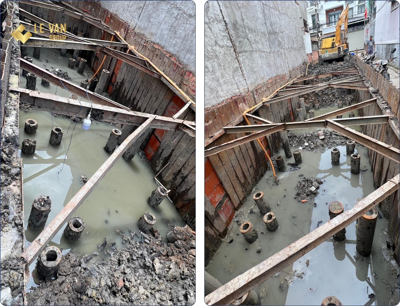 Công tác ép cọc và đào đất hầm công trình