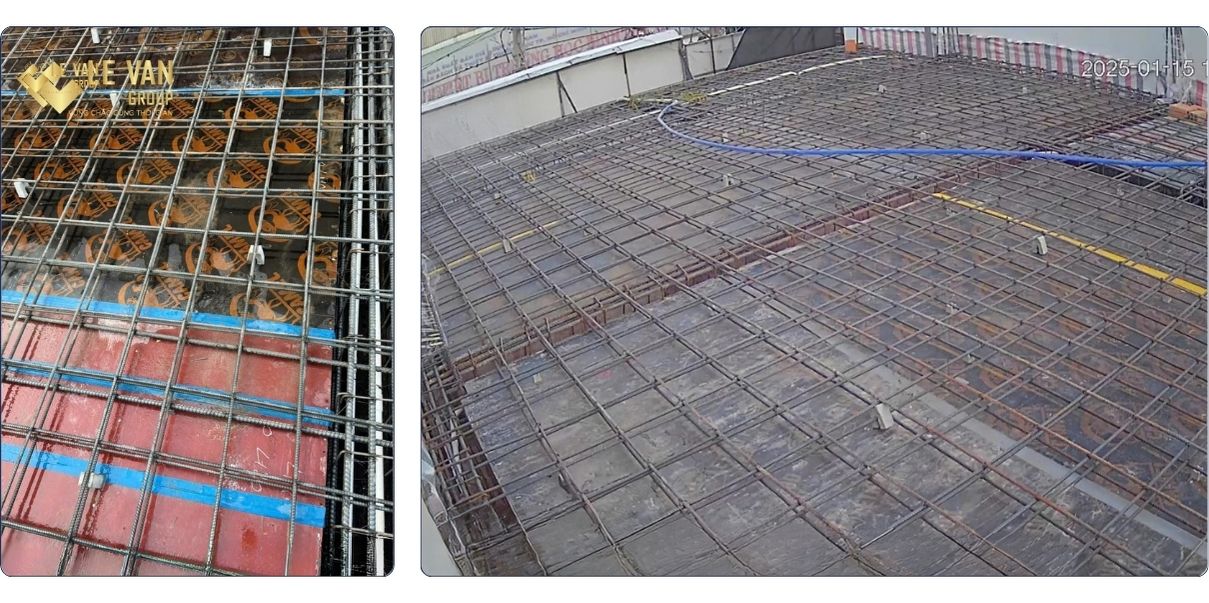 Công tác làm sắt và đổ bê tông sàn sân thượng