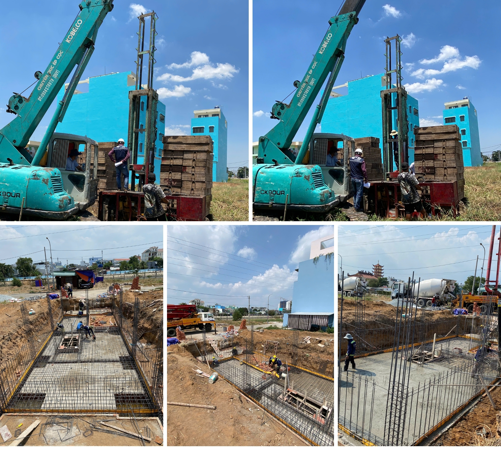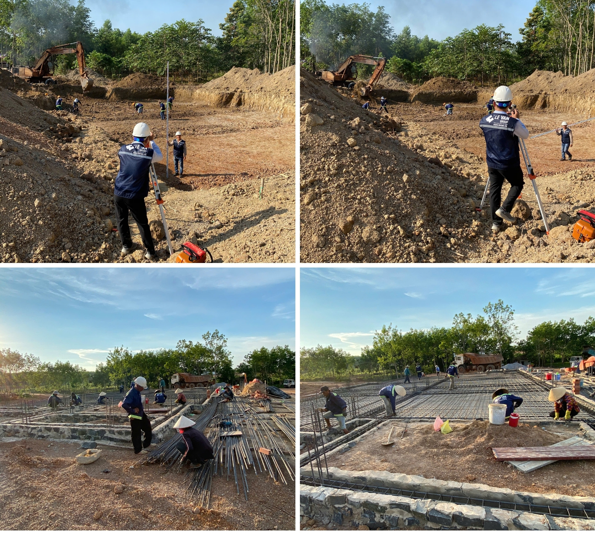 - Đào đất móng, đổ bê tông lót, đầm nền, đào kiếng, làm phẳng, hạ độ.
