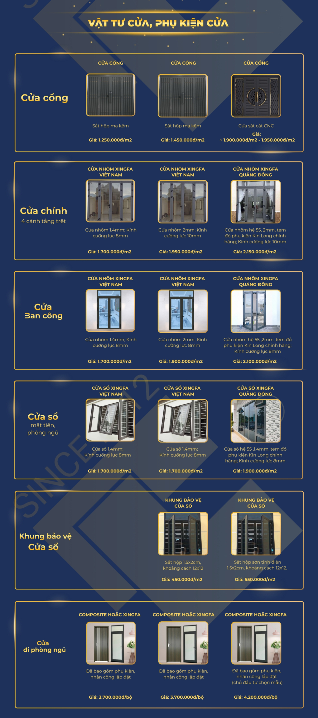 - Cửa sắt, nhôm dày hơn tăng 10–20% giá thành