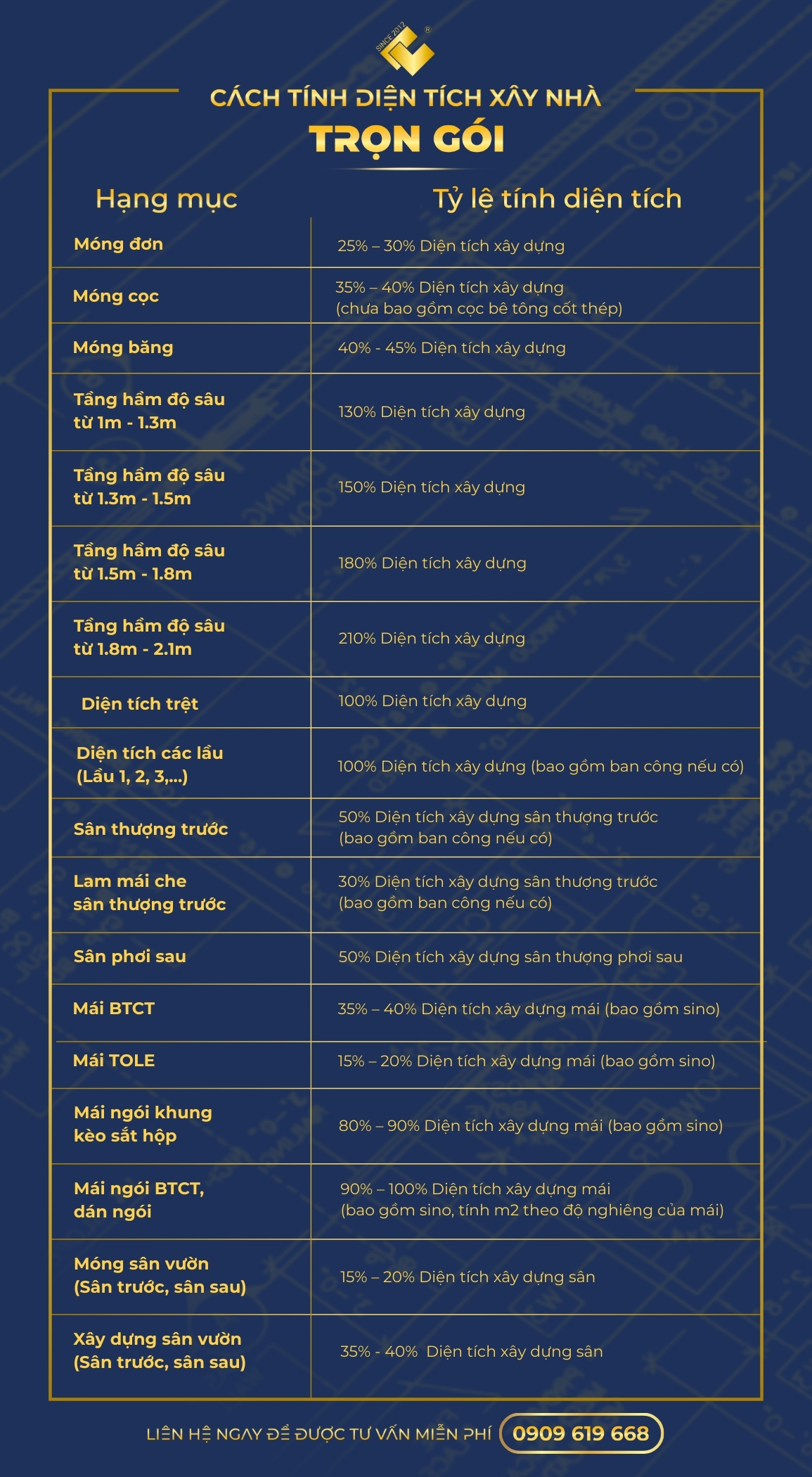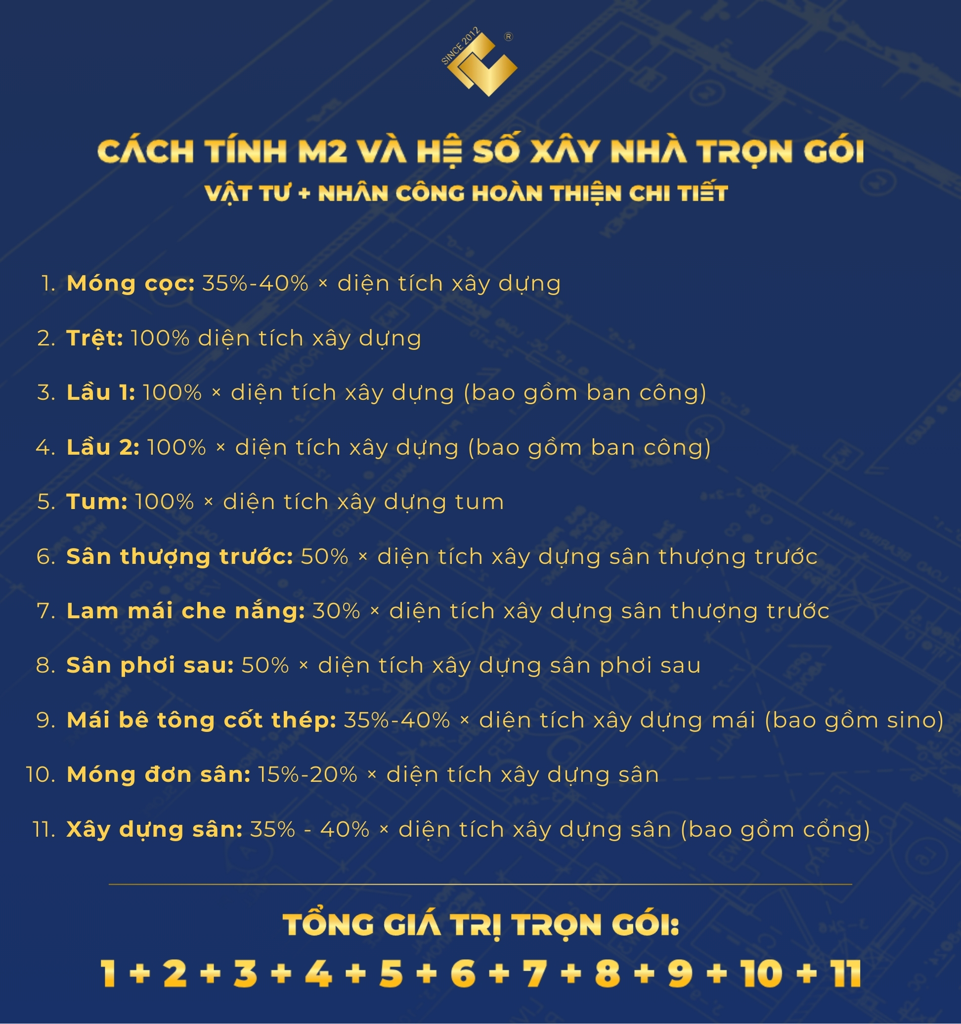 CÁCH TÍNH DIỆN TÍCH XÂY NHÀ TRỌN GÓI