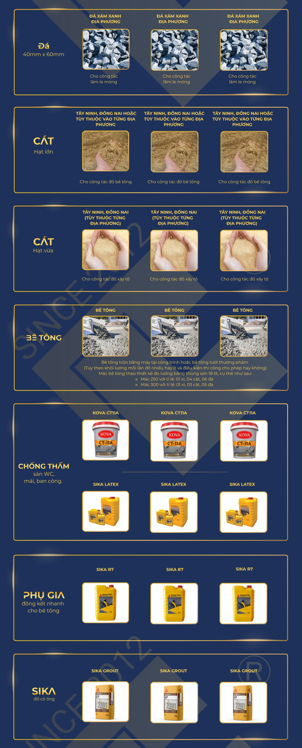 - Ví dụ: Đá 1×2 đen 320.000đ/m²; đá 1×2 xanh 450.000đ/m²