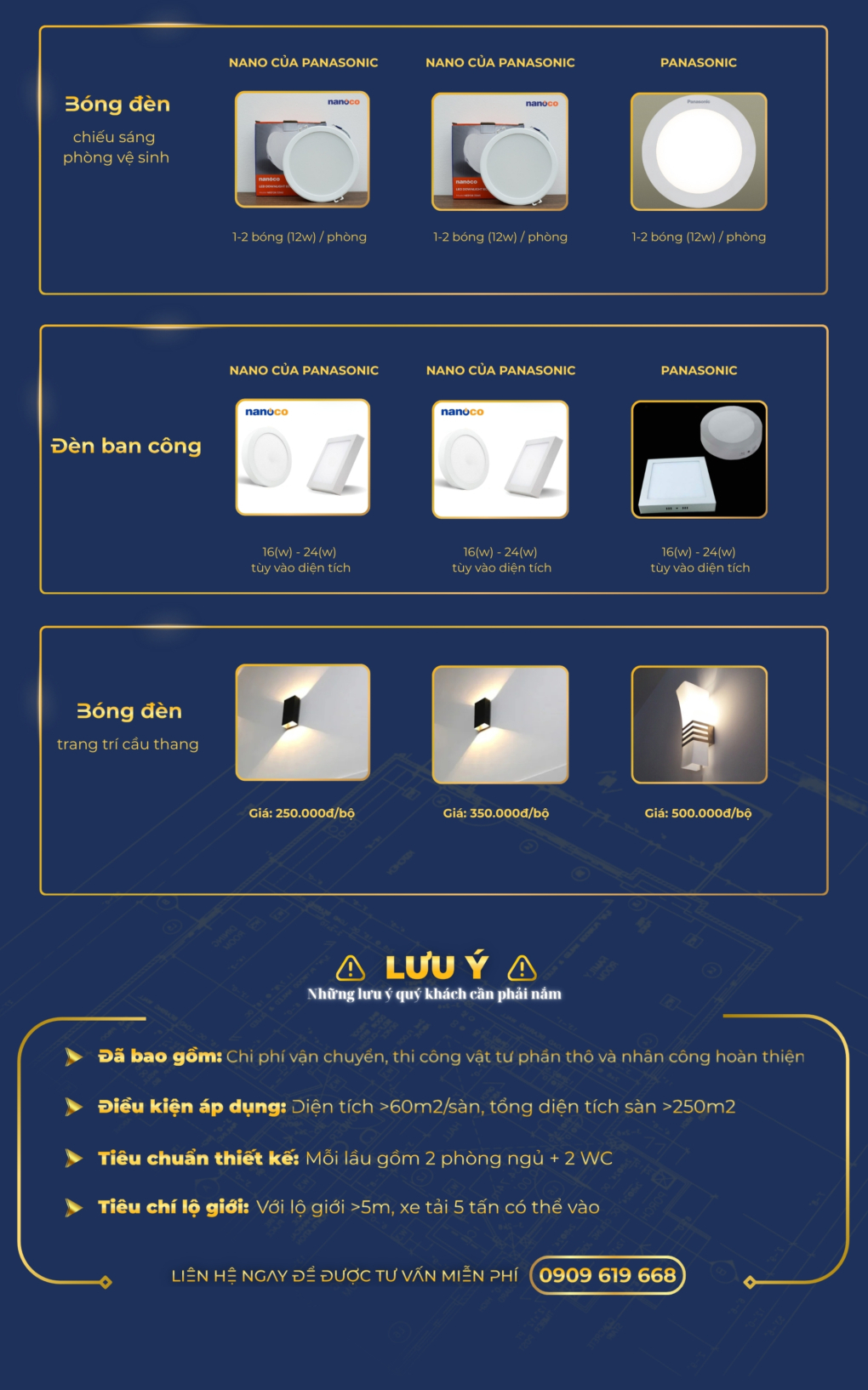 - Diện tích > 60m2/sàn, tổng diện tích sàn >250m2